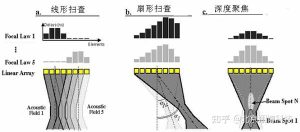超声相控阵进行工作时主要有三种扫描方式,分别为:线性扫描、扇形扫描和动态深度扫描。